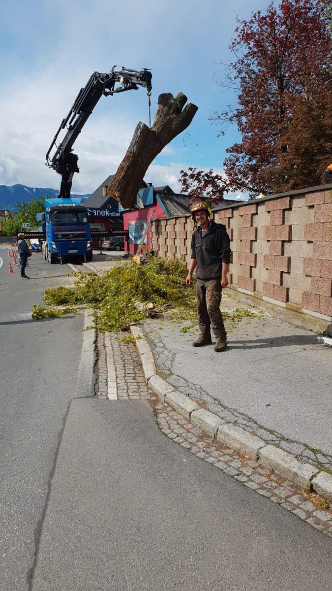 Wir führen Fällungen und Schlägerungsarbeiten mittels Motorsäge, Hubarbeitsbühne, Mobilkran oder Seilklettertechnik durch.