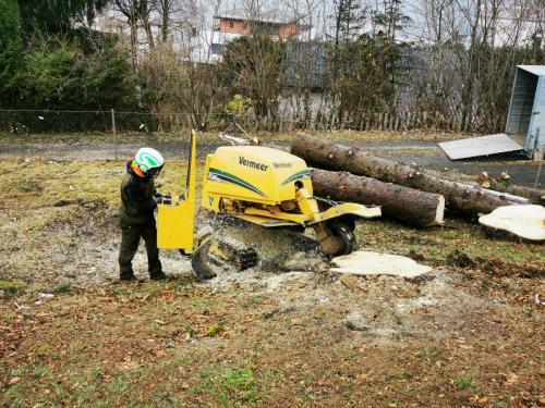 Wir entfernen für Sie mit unserer leistungsstarken Wurzelstockfräse Baumstümpfe jeder Größe. Die Stockfräse ist in der Lage, den Stumpf einschl. der Wurzelanläufe bis tief unter der Erdoberfläche zu entfernen.